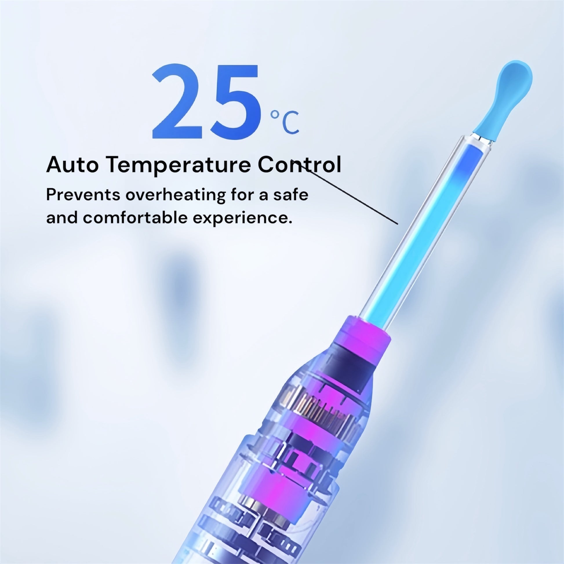 Designed for both comfort and durability, the ClearView Pro features a 304 stainless steel tip that’s washable and long-lasting. It comes with five soft, replaceable silicone scoops in various sizes to ensure a gentle and precise cleaning experience. Plus, its automatic heat-control system prevents overheating, keeping your ears cool and comfortable.
