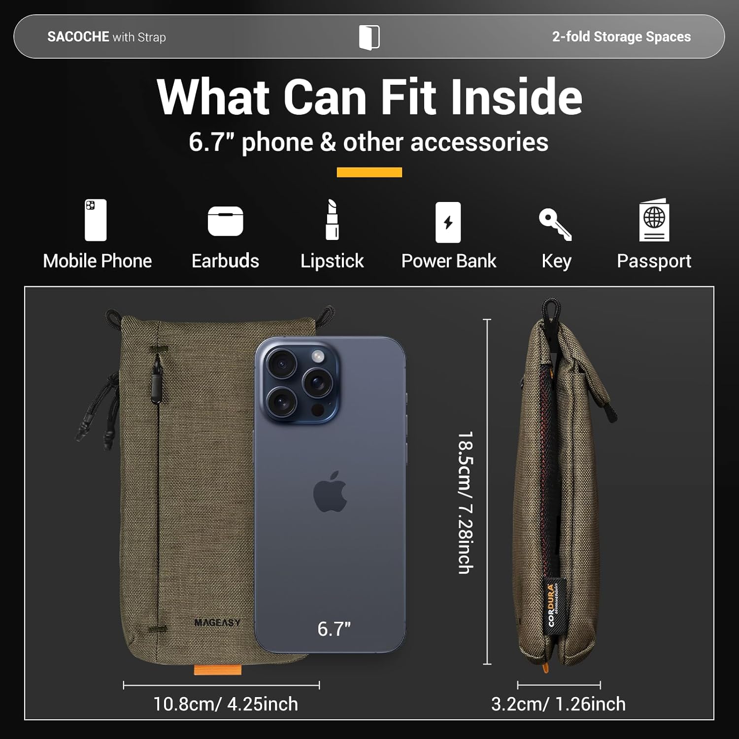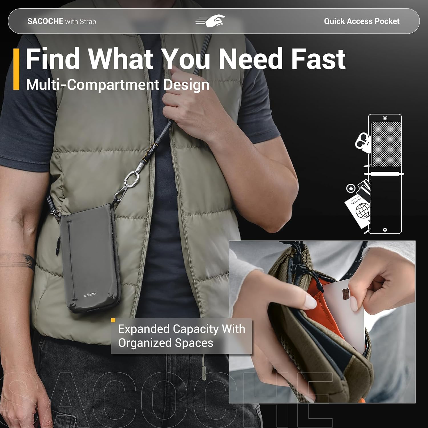 The adjustable strap 🪢 allows for easy, comfortable wear across your body, keeping your hands free for whatever you need.